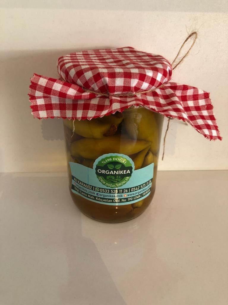 Mevsimin en taze Balık Biberlerimiz ile hazırladığımız, sarımsak ve kendi yaptığımız ev yapımı elma sirkesi ile kurduğumuz Balık Biber 720grmlik cam kavanozdadılar