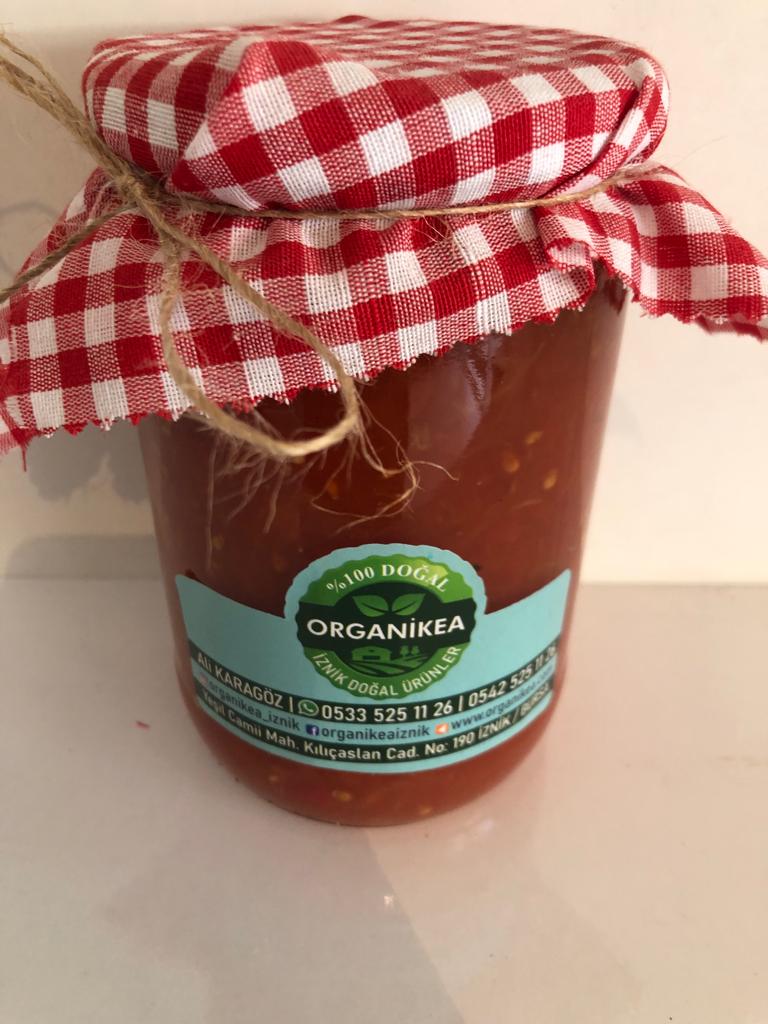 Kendi yetiştirdiğimiz mis kokulu domateslerden yapılmıştır. Mevsiminde topladığımız domateslerimizin kabukları soyularak doğrandı.